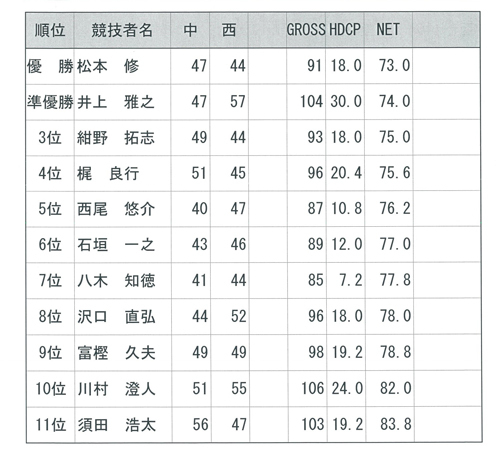 平成28年7月24日(日)クラークカントリークラブでゴルフコンペが開催されました。11名の会員が参加し、松本修先生が優勝しました。来年も開催しますので、多数の会員の参加をお願い致します。
